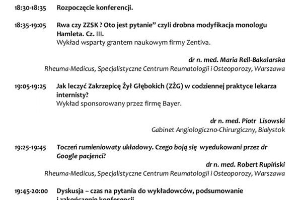 Dziękuję Organizatorom XXVI Krajowej Konferencji Lekarzy Rodzinnych pod patronatem Porozumienia Zielonogórskiego za możliwość prezentacji najnowszych wytycznych leczenia przewlekłej niewydolności żylnej, z przedstawieniem efektów leczenia zabiegowego żylaków kończyn dolnych metodami małoinwazyjnymi. Miło było podzielić się z koleżankami i kolegami lekarzami nie tylko wiedzą, ale i piękną podlaską przyrodą Puszczy Knyszyńskiej.